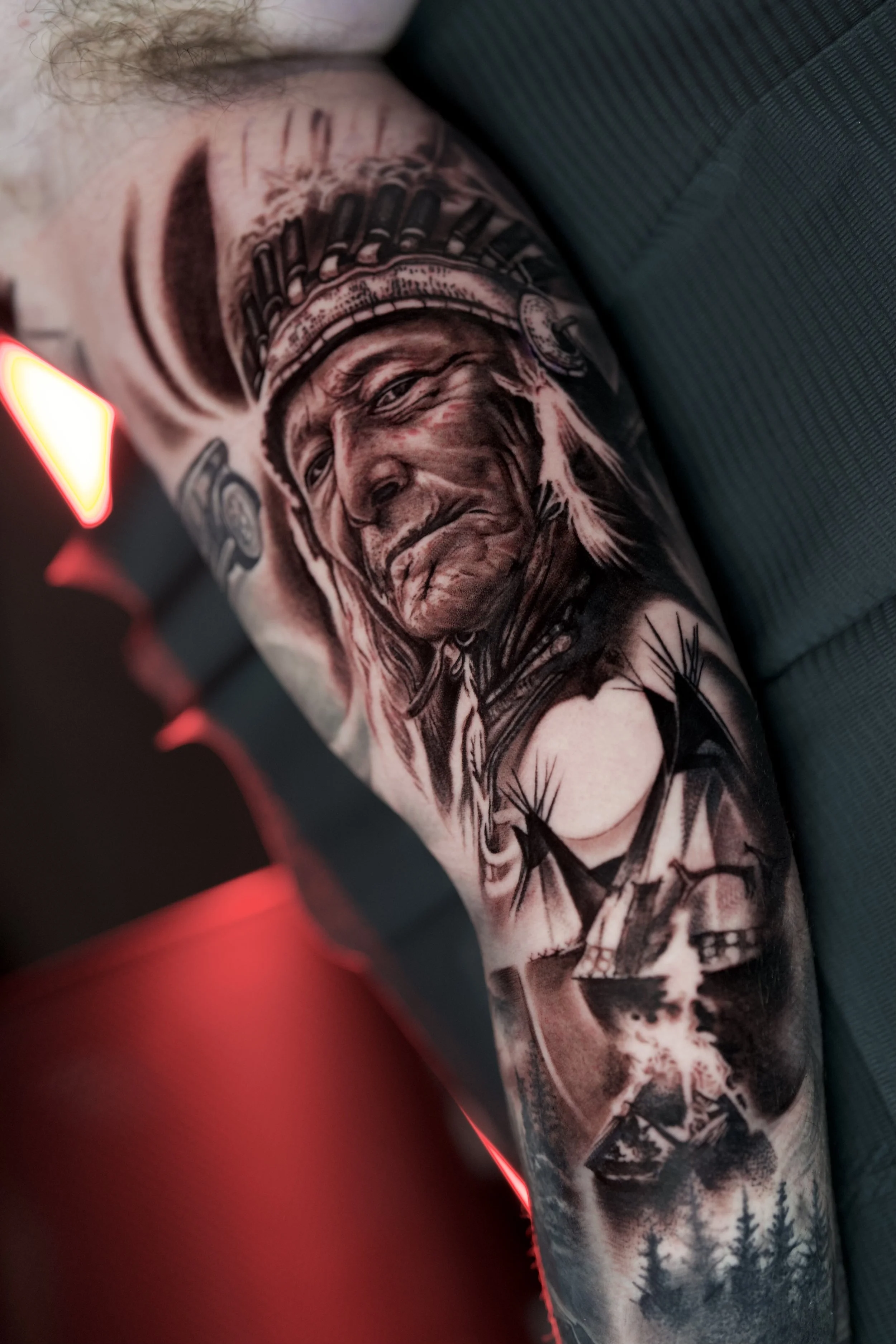 Flamingo Tattoo In Black And Grey On Arm As A Part Of A Sleeve Hawaiian Theme Tattoo By Csaba Tattoo Anansi Munich Germa Flamingo Tattoo Sunset Tattoos Tattoos